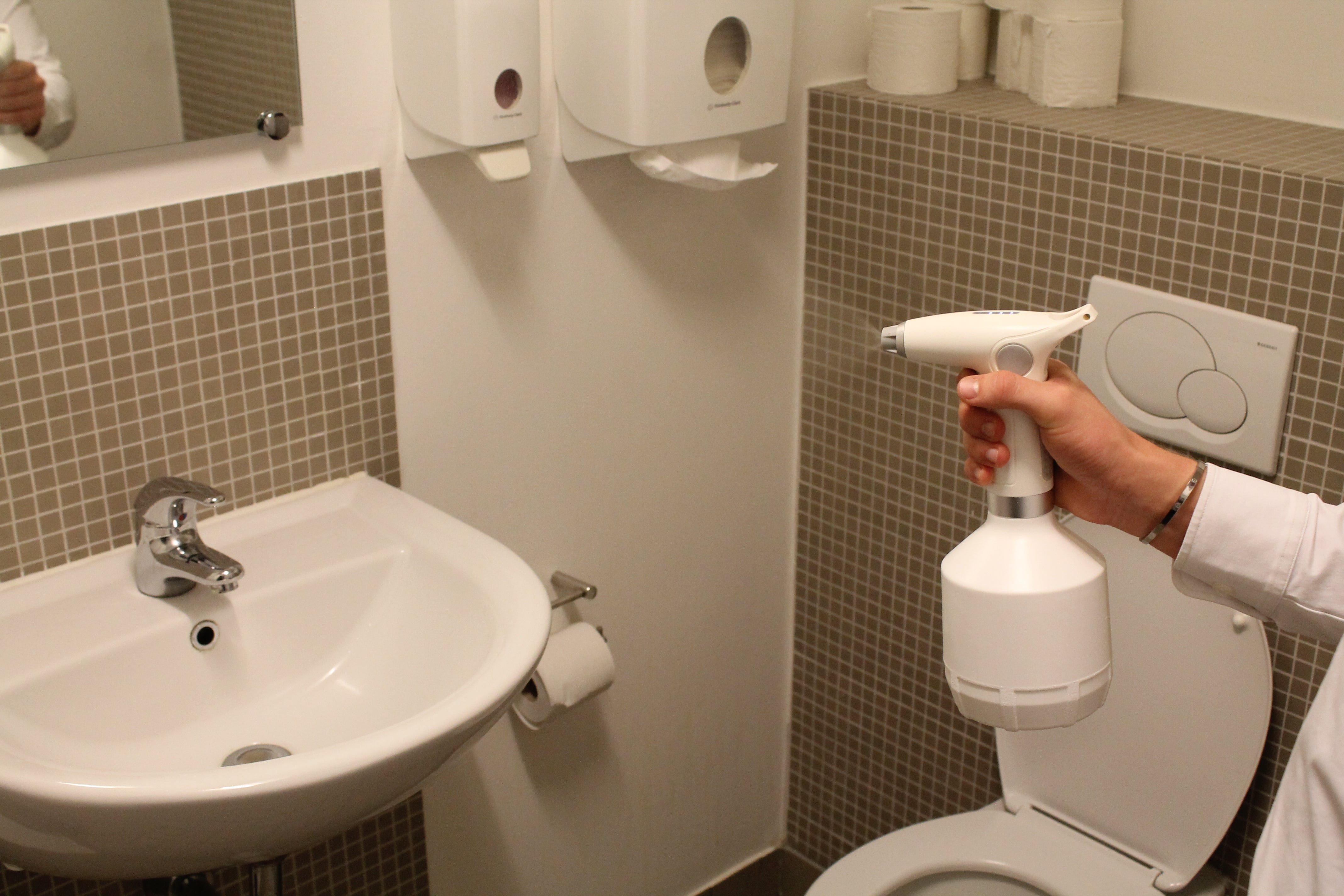 Safesprayer är en elektrisk sprayer som är särskilt lämplig för vattenbaserade desinfektionsmedel. Med sin ergonomiska design är denna sprayer perfekt för desinfektion av kontaktytor som bord, köksytor, dörrhandtag och toaletter. Den har en effektiv spraymunstycke med en mikronstorlek på 50, vilket säkerställer en jämn fördelning av desinfektionsmedlet utan att bilda aerosoler. Safesprayer är lätt att använda och lämplig för daglig desinfektion av områden med frekvent beröring.