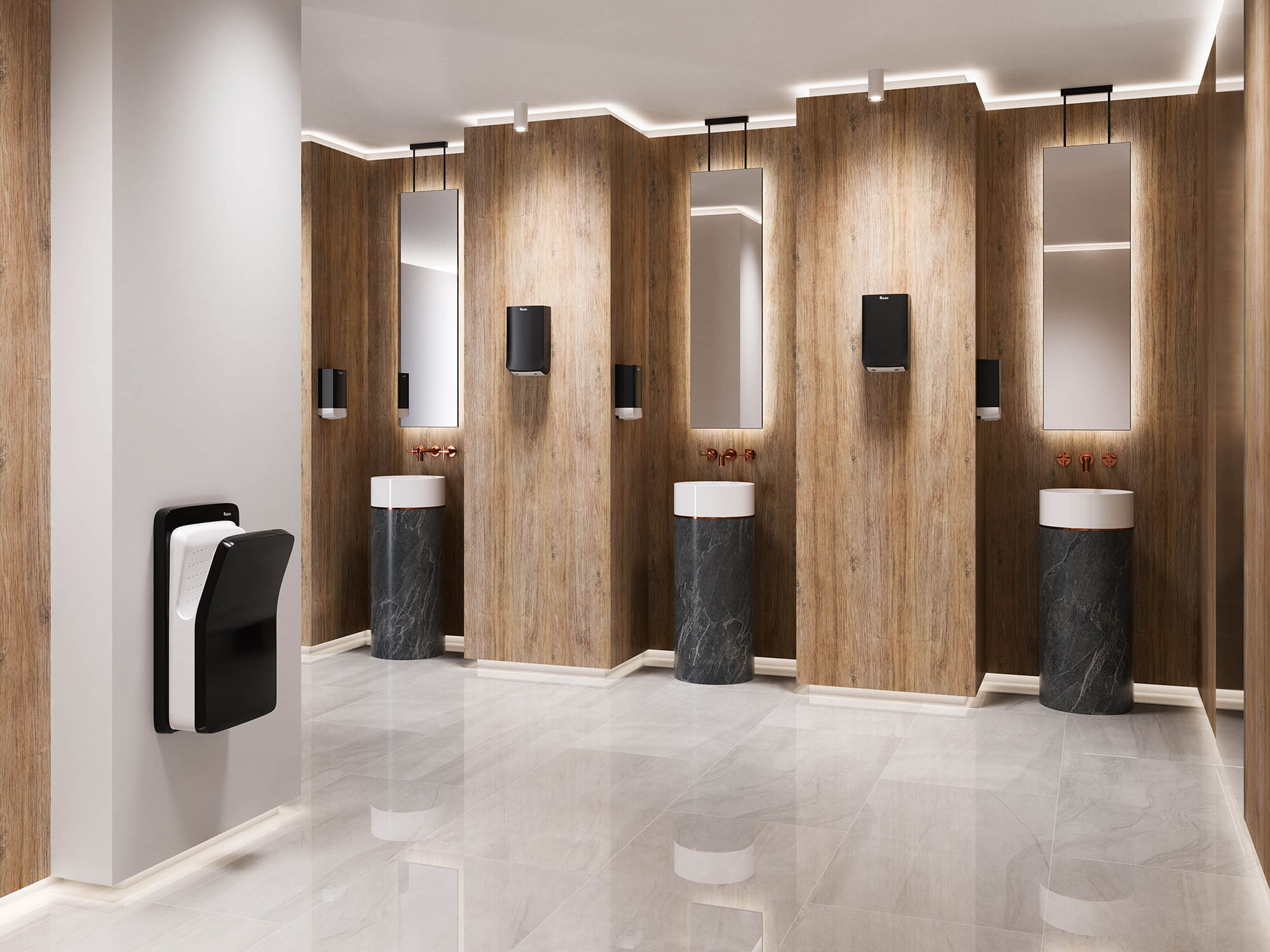 Med kraftfulla motorer som torkar händerna snabbt och effektivt, samtidigt som de använder minimal energi, erbjuder dessa handtorkar både ekonomisk och miljövänlig drift. De är designade med ett elegant och stilfullt utseende, som finns i alla färger och finishar för att matcha alla inredningar, från modern till klassisk. Den kompakta designen säkerställer att de passar även i små utrymmen utan att kompromissa med prestandan.