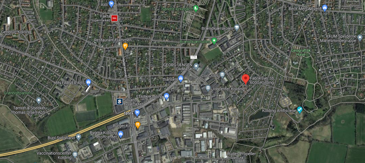 Vårt kontor ligger på: Fabriksvej 36, 6000 Kolding, Danmark.