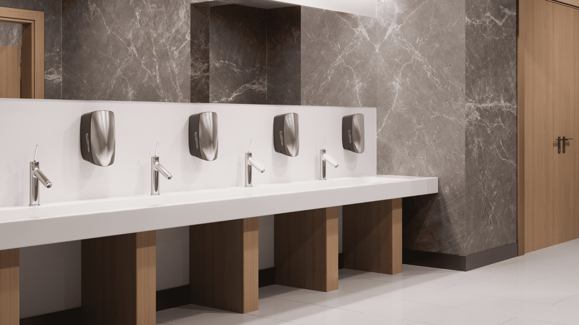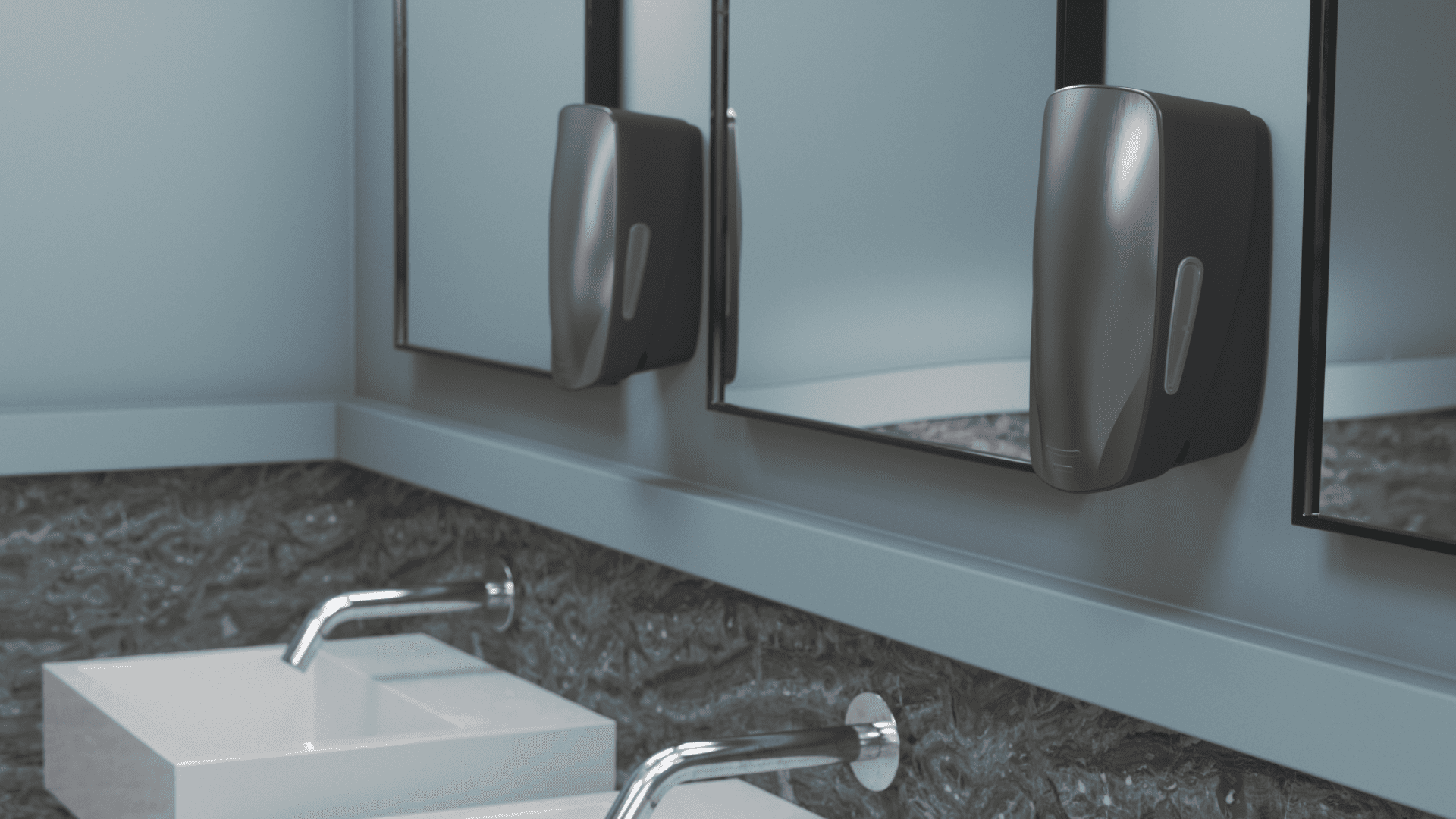 Dispensern finns med 2 pumpar: en pump för skumtvål och en pump för flytande tvål.